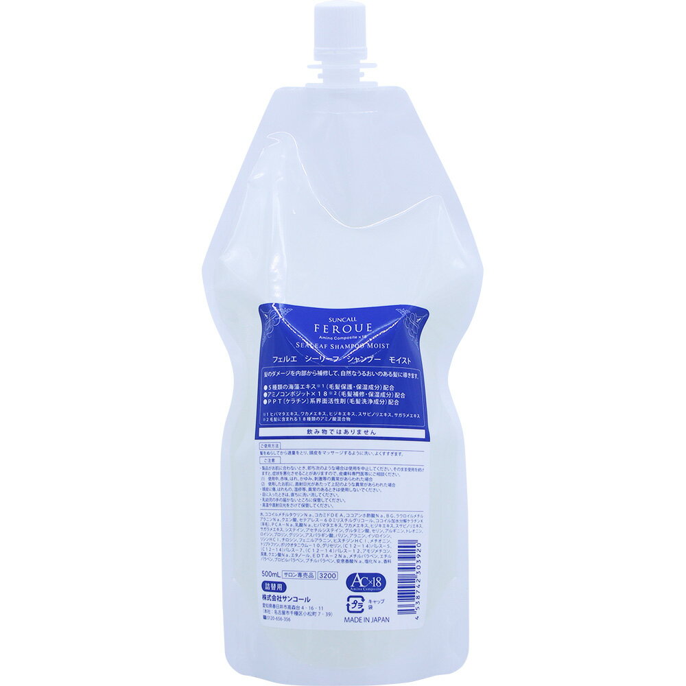 サンコール フェルエ シーリーフ シャンプー モイスト 500mL 詰め替え / 【送料無料】 美容室 サロン専売品 美容院 ヘアケア ダメージケア 保湿 アミノ酸 アミノ酸シャンプー しっとり