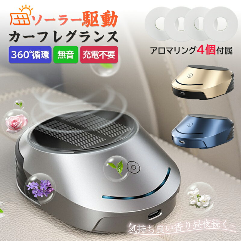 【最新改良】アロマディフューザー 車載アロマディフューザー ソーラー充電 Type-C対応 4種アロマ付き 自動ON/OFF 車用芳香剤 高級カー用品 アルミ合金製 静音 フランス産天然香料 カーフレグランス ギフト バッテリー内蔵 出風口対応 呼吸ライト搭載 車内用 芳香器
