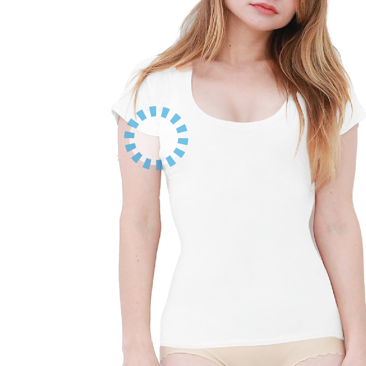 【送料無料】[魔法のタイツ] ストレス0の汗対策 汗染み防止 脇汗インナー最強 レディース 【特大パッド 広範囲カバー 吸湿速乾 消臭加工 高伸縮】 汗わきパッド付きインナー 滝汗 汗取りインナー 深あき 脇隠しインナー 透けにくい Tシャツ 型 色:ホワイト、サイズ:M