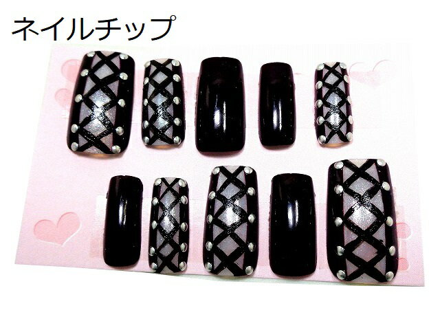 ネイルチップ★硬め仕上げ★付け爪・つけ爪★網タイツ★ブラック★かっこいい・きれい系★フリーサイズ★ネイルチップ★K