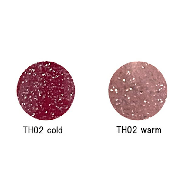 【必ずベースジェルを一層塗布した上からご使用ください】 貴方色に変わるジェル 気温や体温によって色が変化する特殊なジェルです。 つけた瞬間から貴方のシーンを指先のカラーに映し続けます。 しかも暗闇で光を当てればフラッシュに! 見るたび違う表情のオンリーワンネイルを愉しんで。 cold:30℃以下 warm:31℃以上 cold:ピンク warm:ピンク 品番:TH02 内容量:3g 硬化時間:UV約2分 / LED約30秒 備考;ソフトジェル、パール、グリッター&ラメ、ソークオフタイプ