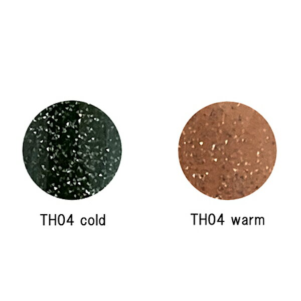 【必ずベースジェルを一層塗布した上からご使用ください】 貴方色に変わるジェル 気温や体温によって色が変化する特殊なジェルです。 つけた瞬間から貴方のシーンを指先のカラーに映し続けます。 しかも暗闇で光を当てればフラッシュに! 見るたび違う表情のオンリーワンネイルを愉しんで。 cold:30℃以下 warm:31℃以上 cold:グリーン warm:ベージュ 品番:TH04 内容量:3g 硬化時間:UV約2分 / LED約30秒 備考;ソフトジェル、パール、グリッター&ラメ、ソークオフタイプ