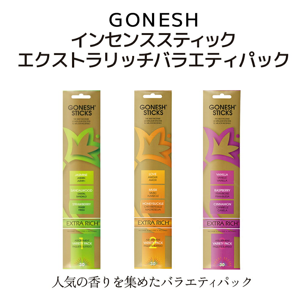 GONESH インセンススティック エクストラリッチバラエティパック 30本入/ ガーネッシュ お香 新生活 一人暮らし 引っ越し 芳香剤 消臭 おうち時間 古着屋 アロマ インテイリア 癒し ルームインセンス 寝室 リビング リフレッシュ リラックス お土産