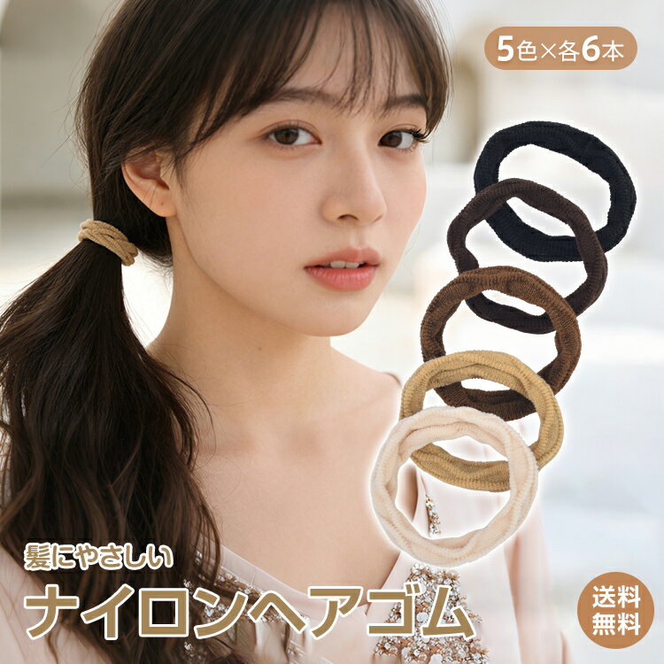 \1点から半額クーポン!/【送料無料】ヘアゴム 30本入り ヘアゴムセット ナイロン 大容量 伸びる ヘアアレンジ ヘアアクセ ブラウン 茶色 太め 髪にやさしい 柔らかい カジュアル シンプル 髪ゴム 通勤 通学 ファッション ap167