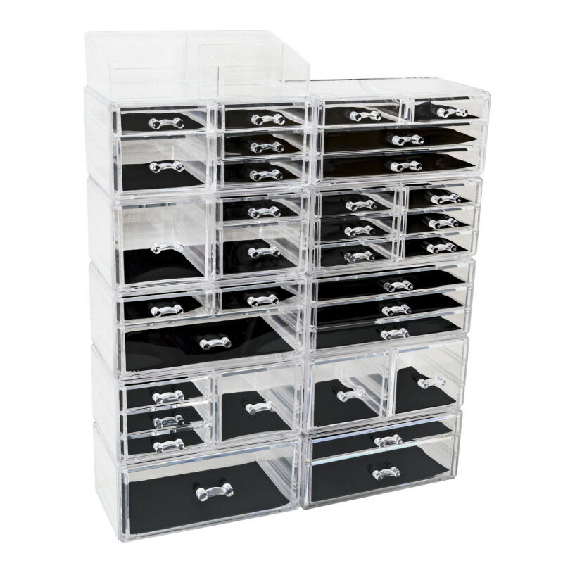 商品説明透明感抜群の高品質アクリル素材を一体成型と超音波接合で組み上げた高級アクリル製オーガナイザー。中に入れたものを一目で確認できるのでディスプレイケースとしても使用可能です。従来のアクリルケースと異なり一体成型で作ることで使用中に接合部から割れてしまうことを防止。ツマミ等はアクリルの接合では最も強度の高くなる超音波接合で取り付けられおり、接着のように見た目が悪くなることもなく綺麗に仕上げられています。またアクリル自体にも厚みがあり、製品自体にも重さが有りますので使用中に動いてしまうことが無く使い勝手も抜群です。単体でも組み合わせても使いやすく、お店のディスプレイやネイルの小物入れ、筆記用具やアクセサリーの収納にも最適な仕様となっています。リンク007商品内容■入数:1■バリエーション:12種展開・ 1 :フリータイプ1段・ 2 :フリータイプ2段・ 3 :フリータイプ3段・ 4 :フリー1段+小引き出し×2・ 5 :フリー2段+小引出し×2・ 6 :深型フリー×2・ 7 :深型フリー+小引出し×3・ 8 :深型フリー+中引き出し+小引出し・ 9 :中引き出し×2+小引出し×2・10 :中引き出し+小引出し×4・11 :小引出し×6・12 :スタンドラック商品詳細■サイズ(約)・外寸:幅24cm×高さ11cm×奥行13.5cm*各引き出しサイズについてはページ内画像をご確認ください。■材質:アクリル製■仕上げ:クリア仕上げ■アクリルはガラスと比べ強度に優れますが、硬いもので傷が付きやすいので必要に応じて市販のコルクシート等を使用することをお勧めいたします。■硬い床等に落下させて強い衝撃を与えると割れや破損の原因となります。■シールはがし等の特殊な溶剤で曇りや溶解が起こる場合が有りますので付着しないようにご使用ください。■製品の使用上重量が有りますので設置場所に十分な耐荷重性が有ることを確認してください。■積み上げてご使用される場合転倒しないようにしっかりとした場所に設置してください。■お手入れは柔らかい布(メガネ拭き等)で拭き、汚れがひどい場合は中性洗剤で洗い流してください。■ティッシュやタオル等で拭くと傷が付く場合が有ります。■引き出しにはロック機能(引き出しが止まり、必要以上に引き出せなくなる機能)がありませんので使用時は手前に引きすぎないようにご使用ください。■本製品は自己責任にてご使用ください。製品に不良等がある場合を除き当社では事故や損害等に関する保証はいたしません。注意事項■輸入品につき傷やスレなどがある場合がございます。ご了承下さい。■本ウェブサイトに掲載されている商品の色と実際の商品の色とは、ご使用されるモニターまたはモニターの設定の違い等により、相違がある場合があります。保証の有無■初期不良・7日以内の不良に関しましては100%対応致します。■7日以降の保証期間につきましては商品毎に異なりますのでご確認ください。■お客様都合での返品につきましては送料、その他手数料のご負担をお願いします。