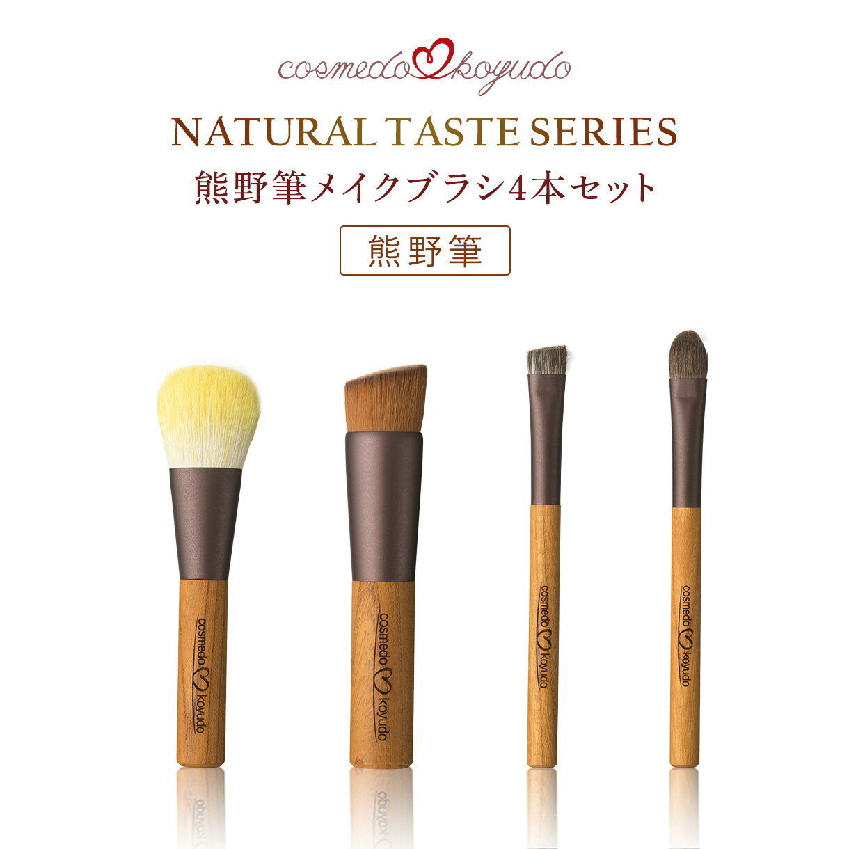 【コスメ堂 × 晃祐堂】 熊野筆 メイクブラシセット 4本セット 日本製(チークブラシ ファンデーションブラシ アイシャドウブラシ アイブロウブラシ)【 眉筆 眉ブラシ リキッド メイクブラシセット 熊野化粧筆 天然毛 誕生日 プレゼント 木製 人気】 *