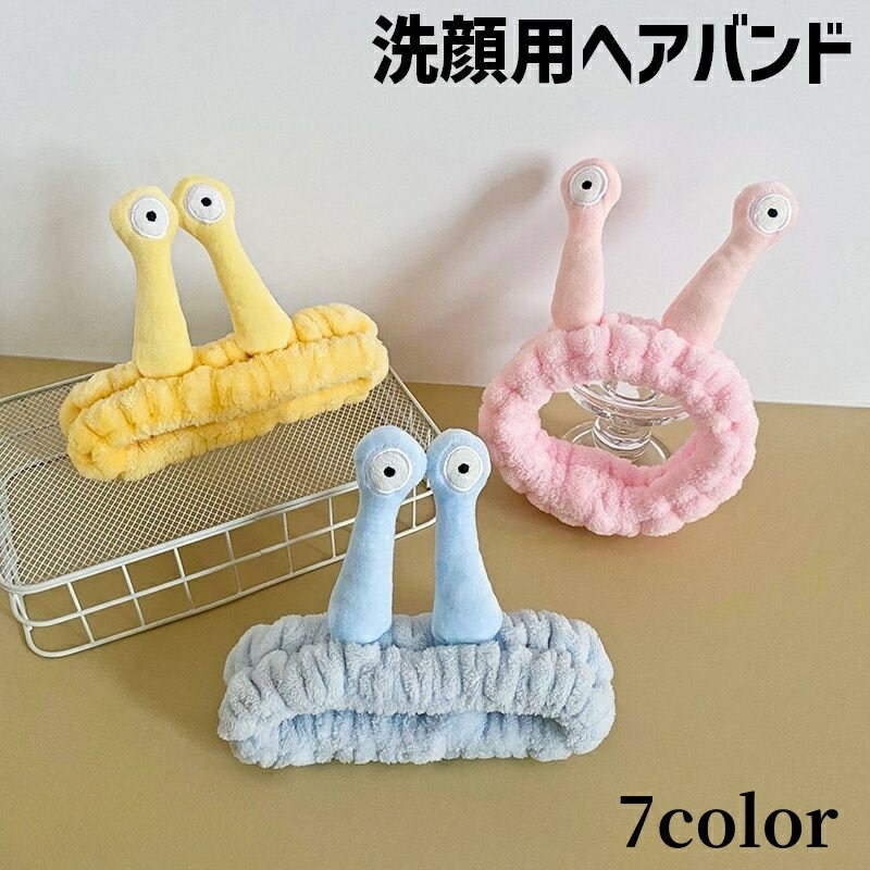 送料無料 ヘアバンド ヘッドバンド 洗顔用 レディース 女性 女の子 子ども キッズ 目付き 髪留め フェイスケア メイク お風呂 カタツムリ かたつむり ユニーク 面白い かわいい