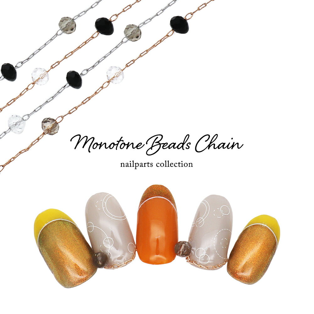 ネイルパーツ モノトーンビーズチェーン 全2色 [ゴールド/シルバー] 約30cm 1本入り セルフネイル ジェルネイル 耳つぼ