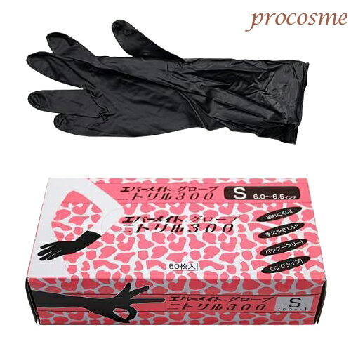エバーメイトグローブ ニトリル300 S (6.0~6.5インチ) 50枚入り|全長約30cm パウダーフリー 左右兼用