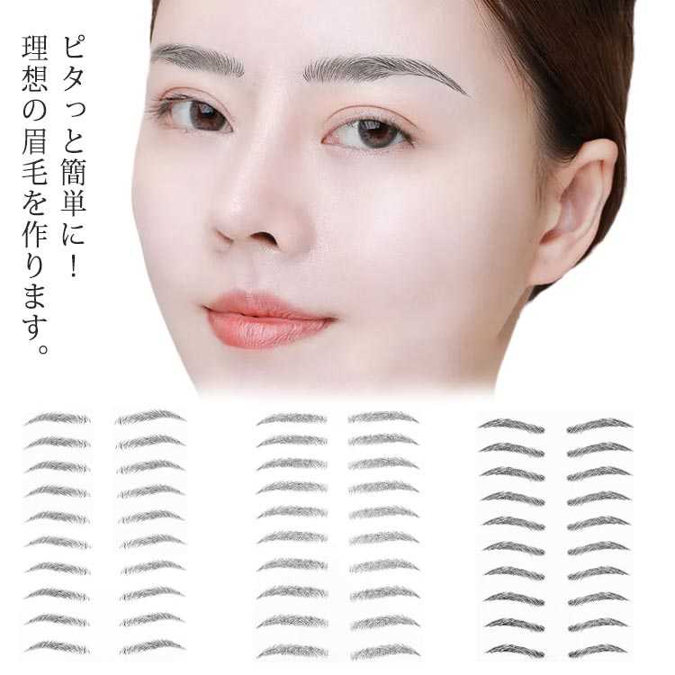 ピタっと簡単に!理想の眉毛を作ります。眉が薄くてすっぴんになれない、眉がうまく描けない…そんなお悩みに、貼るだけで美眉が完成!毛流れ・太さ・長さ・色…日本人に合うよう、ーつーつこだわってデザインしました。こだわりの防水仕様。プールや温泉でも!忙しい朝はパパッと「時短メイク」!使い方:1、眉毛が描かれた台紙から保護フィルムを剥がします。2、眉毛の描かれている部分ギリギリでカットします。3、光沢のある面に自分の眉毛の位置に載せます。4、水で眉毛全体を濡らします。5、ゆっくりと台紙を剝がします。6、シールの上に、柔らかめのアイブロウパウダーを重ねます。シールのフチに塗らないように注意して下さい完成です! サイズ50枚サイズについての説明50枚素材色1 2 3 4 5 6 7 8 9 10 11備考 ●サイズ詳細等の測り方はスタッフ間で統一、徹底はしておりますが、実寸は商品によって若干の誤差(1cm〜3cm )がある場合がございますので、予めご了承ください。●製造ロットにより、細部形状の違いや、同色でも色味に多少の誤差が生じます。●パッケージは改良のため予告なく仕様を変更する場合があります。▼商品の色は、撮影時の光や、お客様のモニターの色具合などにより、実際の商品と異なる場合がございます。あらかじめ、ご了承ください。▼生地の特性上、やや匂いが強く感じられるものもございます。数日のご使用や陰干しなどで気になる匂いはほとんど感じられなくなります。▼同じ商品でも生産時期により形やサイズ、カラーに多少の誤差が生じる場合もございます。▼他店舗でも在庫を共有して販売をしている為、受注後欠品となる場合もございます。予め、ご了承お願い申し上げます。▼出荷前に全て検品を行っておりますが、万が一商品に不具合があった場合は、お問い合わせフォームまたはメールよりご連絡頂けます様お願い申し上げます。速やかに対応致しますのでご安心ください。