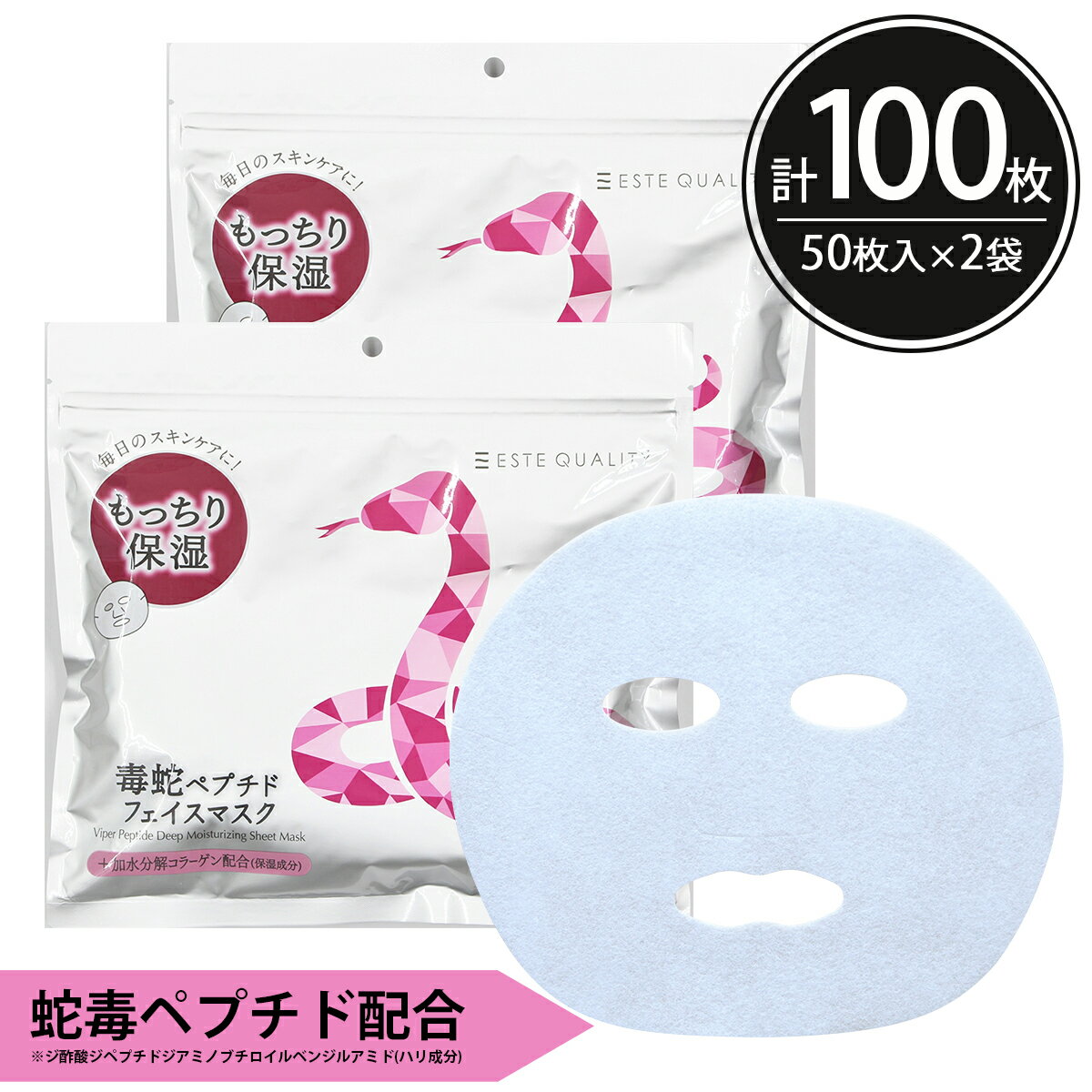 シートマスク パック 100枚【50枚入×2個】 ESTE QUALITY 毒蛇ペプチド エイジングケア 保湿 大容量 毎日 100枚 スキンケア フェイスマスク フェイスパック 顔パック 日本製 サクラビューティーラボ