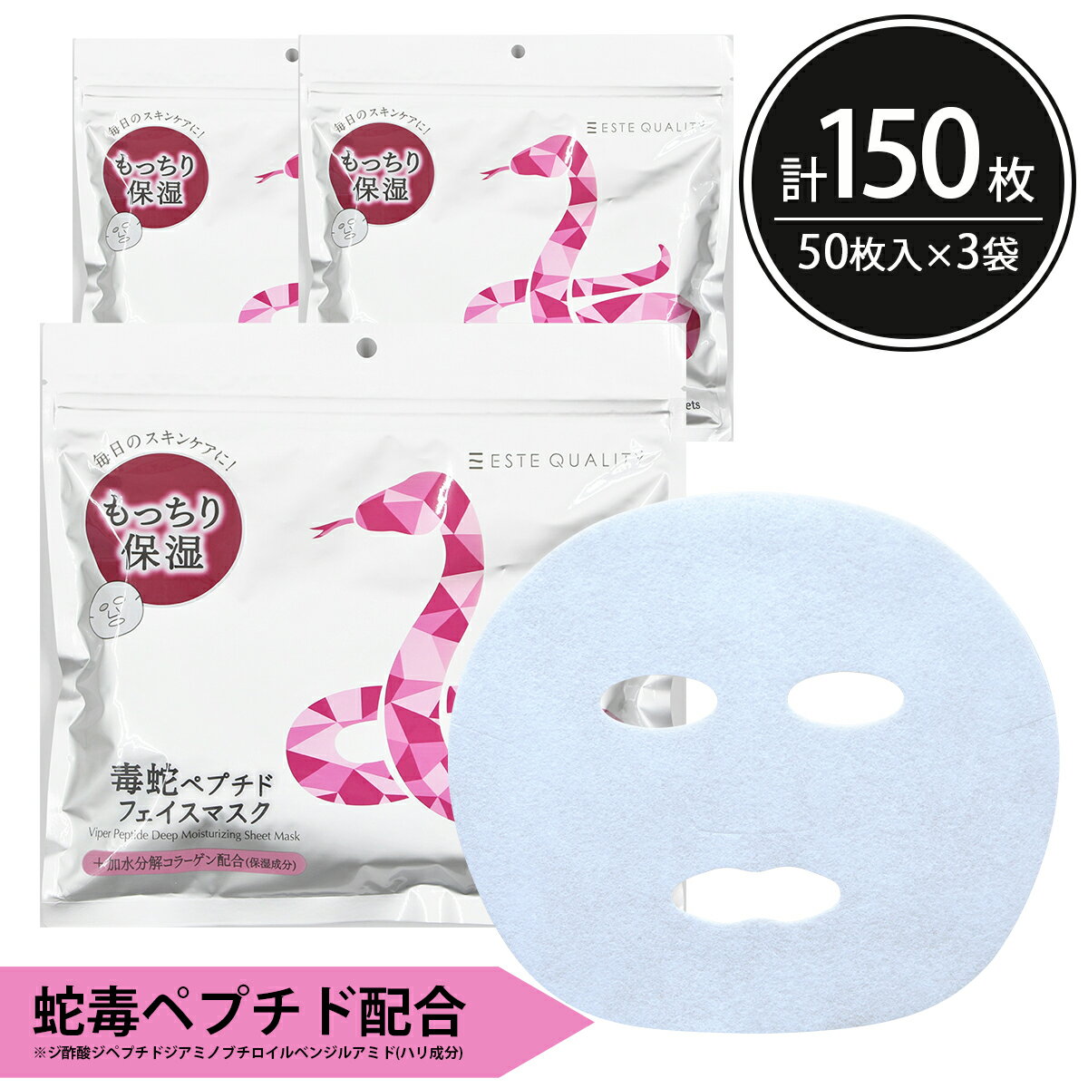 シートマスク パック 150枚【50枚入×3個】 ESTE QUALITY 毒蛇ペプチド エイジングケア 保湿 大容量 毎日 100枚以上 スキンケア フェイスマスク フェイスパック 顔パック 日本製 サクラビューティーラボ