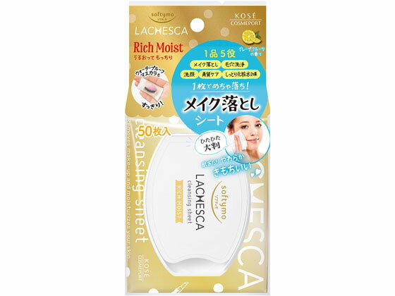 【商品説明】1品 5 役の多機能クレンジングシート。メイク落とし・毛穴洗浄・洗顔・角質ケア・しっとり化粧水効果にマスカラクリア成分配合で、しっかりアイメイクもするんと落とします。【仕様】成分:水・BG・DPG・エタノール・ジカプリン酸PG・アルガニアスピノサ核油・テトラヘキシルデカン酸アスコルビル・ホホバ種子油・EDTA−2Na・アクリル酸アルキルコポリマー・ラウリル硫酸Na・水酸化Na・水添ポリイソブテン・フェノキシエタノール・メチルパラベン・香料【検索用キーワード】コーセーコスメポート ソフティモ ラチェスカ うるおいクレンジング シート リッチモイスト 50枚入 クリアターン 大容量 マスク おすすめ 評価 評判 人気 使用感 使い心地 ランキング 香り 天然 効果 見た目 かわいい きれい かっこいい スキンケア 基礎化粧品 S283811品 5 役の多機能クレンジングシート