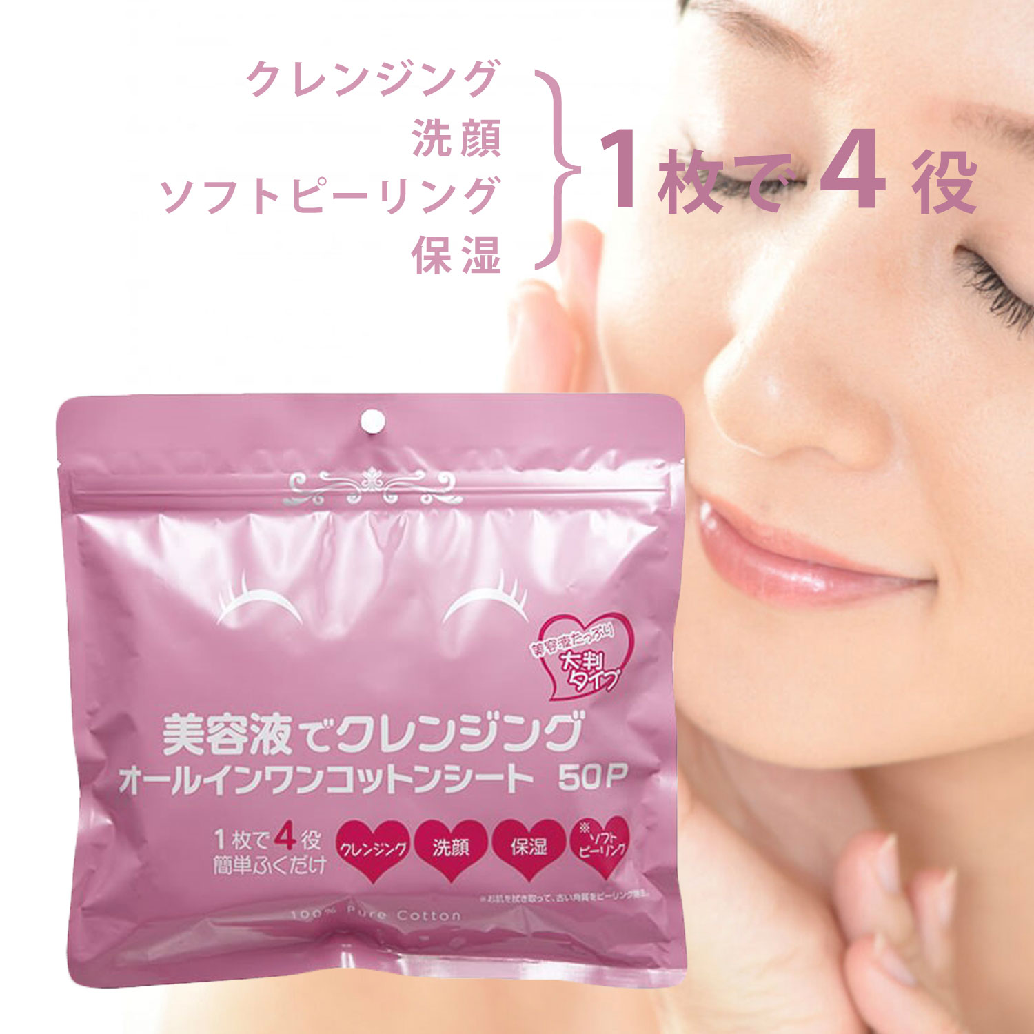 クレンジング シート 化粧落とし シート コットン 拭くだけ 簡単メイク落とし クレンジングオイル クレンジングバーム 美容液でクレンジング オールインワンコットンシート 50枚
