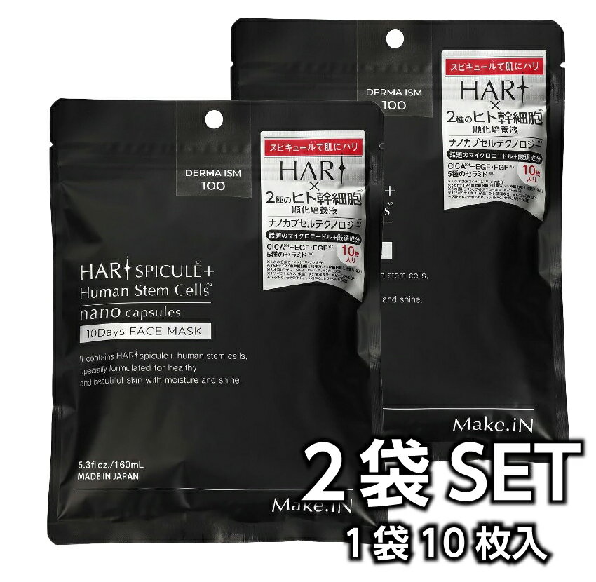 【2袋セット】Make.iN HARI スピキュール + ヒト幹細胞 10days フェイスマスク 1袋10枚入×2袋セット パック セラミド CICA EGF FGF 保湿 スキンケア