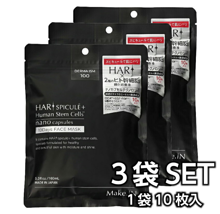 【3袋セット】Make.iN HARI スピキュール + ヒト幹細胞 10days フェイスマスク 1袋10枚入×3袋セット パック セラミド CICA EGF FGF 保湿 スキンケア