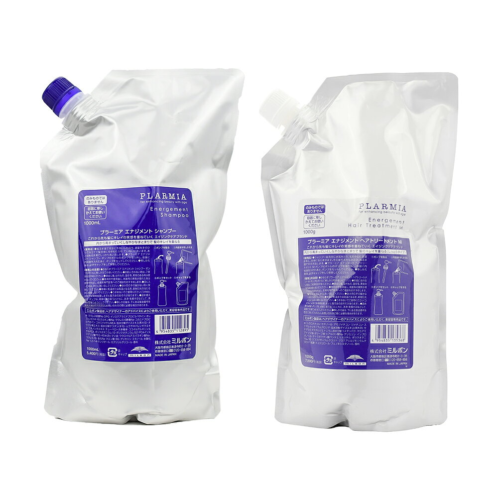 【送料無料(全国)】 ミルボン プラーミア エナジメント シャンプー + トリートメント セット M 1000ml/1000g 詰め替え (milbon PLARMIA) ミルボンプラーミア プラーミヤ 頭皮の悩み エイジングスパ 乾燥毛 保湿