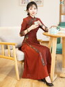 |  チャイナドレス レディース 女性用 新中華風 改良 アオザイ風 ポロ襟 長袖 パフスリーブ ミディ丈 ウエストシェイプ 細見え 体型カバー シェニール素材 春夏 日常使い 普段着 エレガント 上品 カジュアルワンピース