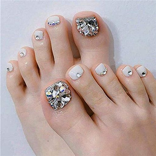 【送料無料】24枚入り 美脚魅せもばっちりでコーデ力! 足指の爪 シルバーホワイト 偽の爪 色:シルバーホワイト、サイズ:12mm シルバー