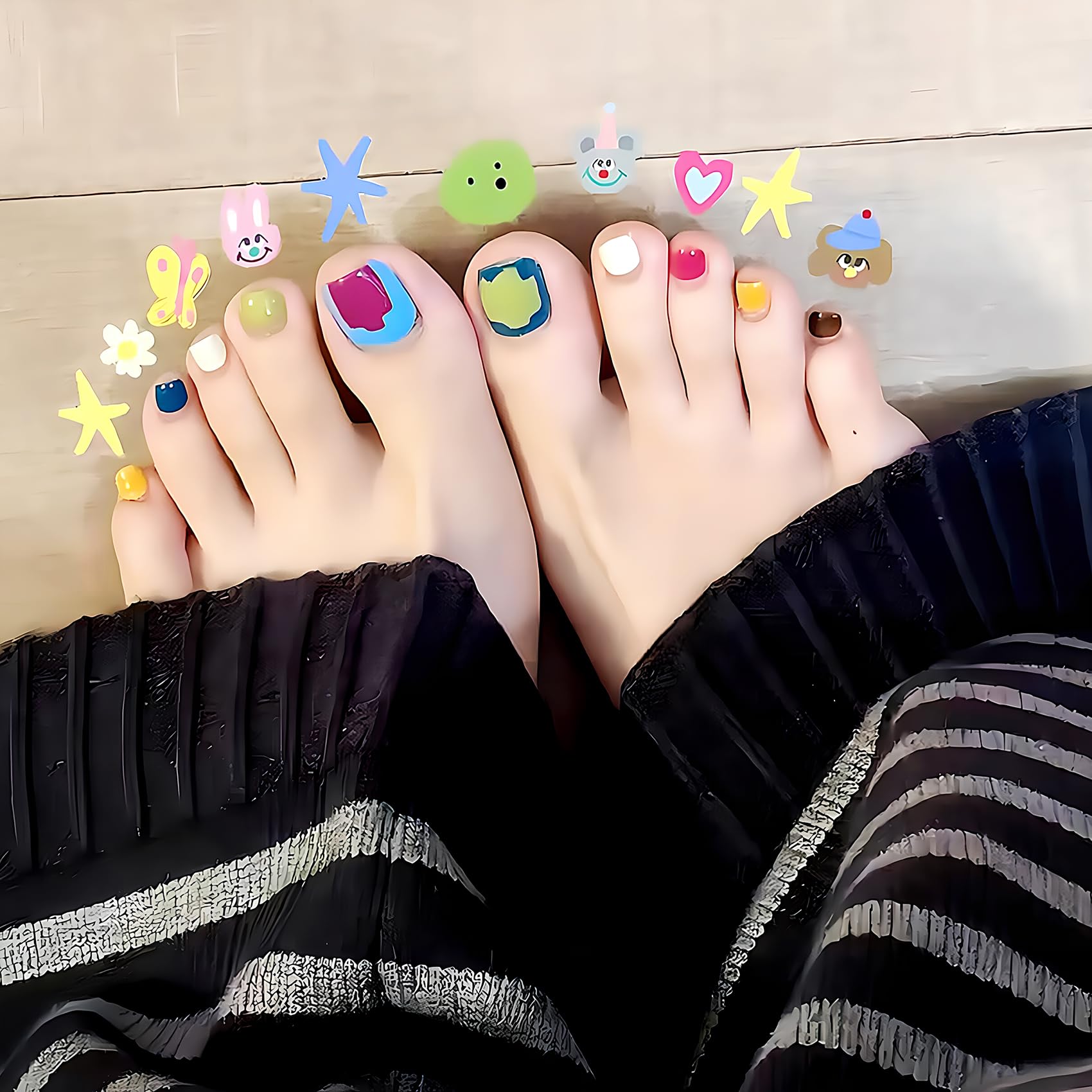 【送料無料】[NEURAD]ネイルチップ 足用 24枚入 3Dダイヤ フットネイル フットネイルチップ 足用ネイルチップ マグネット 夏 付け爪 猫目石 可愛い 人気 シンプル 色:Color44、サイズ:ショート