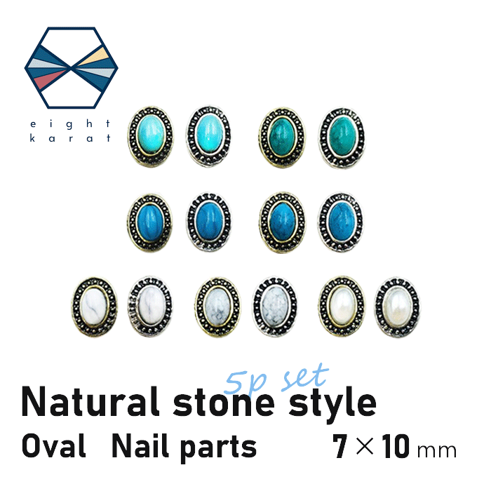 天然石風 エスニックオーバルパーツ【5個セット】7×10mm ターコイズ ターコイズブルー グリーン ホワイト コンチョ モロッコ 立体パーツ デコ デコパーツ エスニック 天然石 メタルパーツ オーバル 秋ネイル