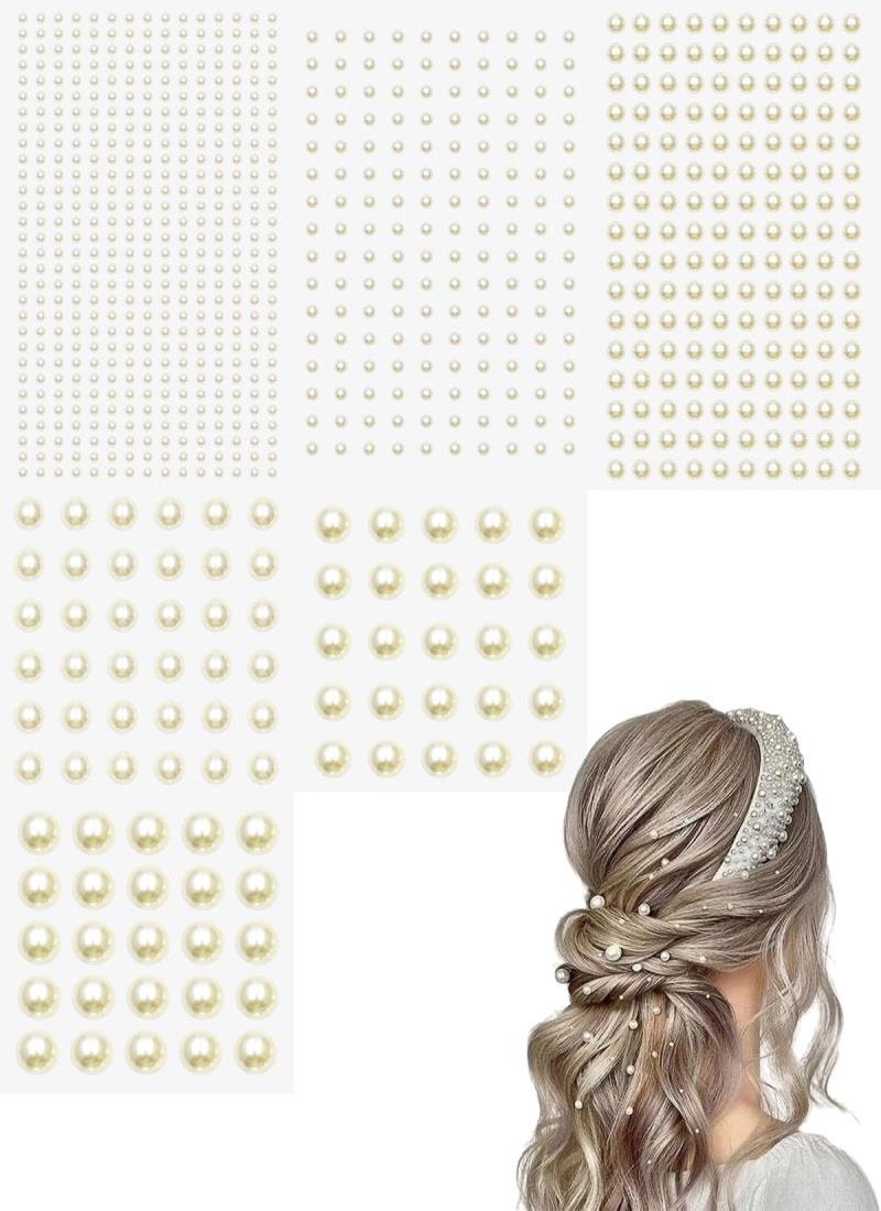 harukita パールステッカー パールシール ステッカー 真珠 フェイスステッカー 自己粘着性 ネイルパーツ DIY 化粧用 携帯電話装飾 6枚セット 6サイズ