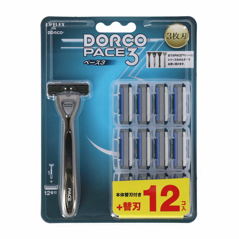 LIFELEX×DORCO 3枚刃替刃式カミソリ本体+替刃12個約幅158×奥行30×高さ209mm