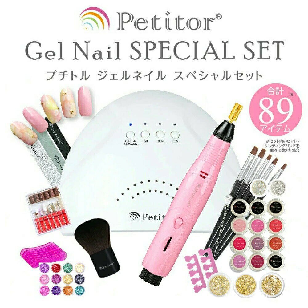 ジェルネイル キット マシーン付き89点キット スターターキット プチトル ジェル ネイル スペシャル セット UV LEDライト 化粧品ジェル カラー ベース ノンワイプトップ ダストブラシ
