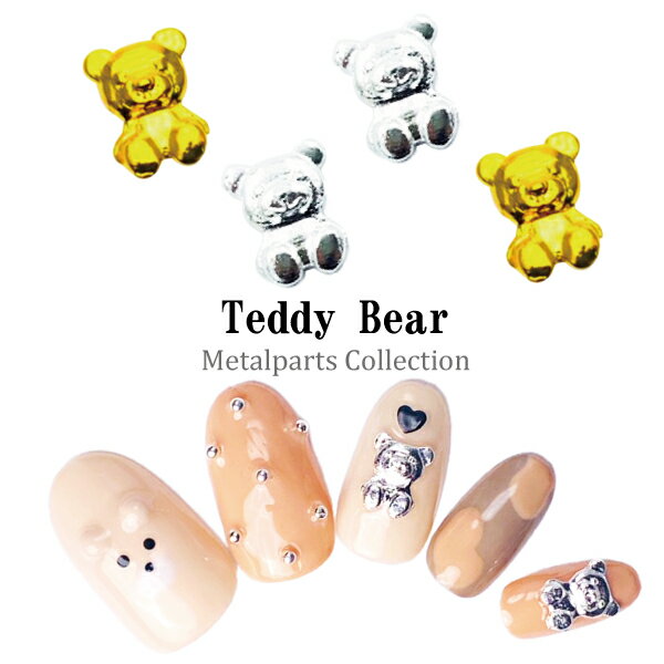 メタルパーツ テディベア 熊 ネイルパーツ ゴールド 2個入り ネイル用品 Nail parts