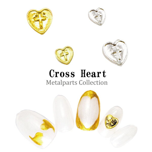 メタルパーツ クロスハート ネイルパーツ(ゴールド シルバー)4個入りネイル用品 Nail parts ハート クロス 十字架
