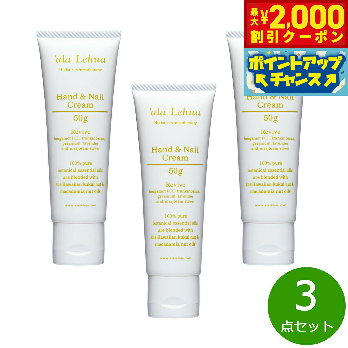 【最大2000円OFFクーポン!&店内ポイント最大57倍!本日限定!】`ala Lehua ハンド&ネイルクリーム Revive リヴァイブ 50g×3点【送料無料】
