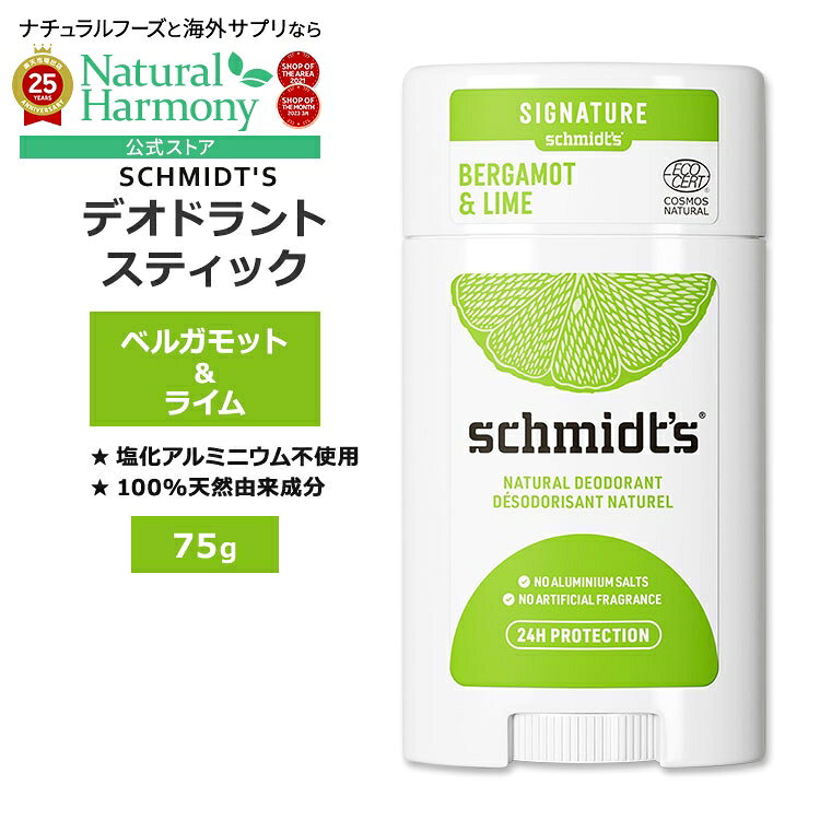 【店内8千円以上1000円OFFクーポン】[スティック型デオドラント]シュミッツ デオドラントスティック ベルガモット&ライム 75g (2.65oz) SCHMIDT'S DEODORANT STICK Bergamot & Lime パーソナルケア 100%天然由来成分【お取り寄せ商品】【合わせて買いたい】