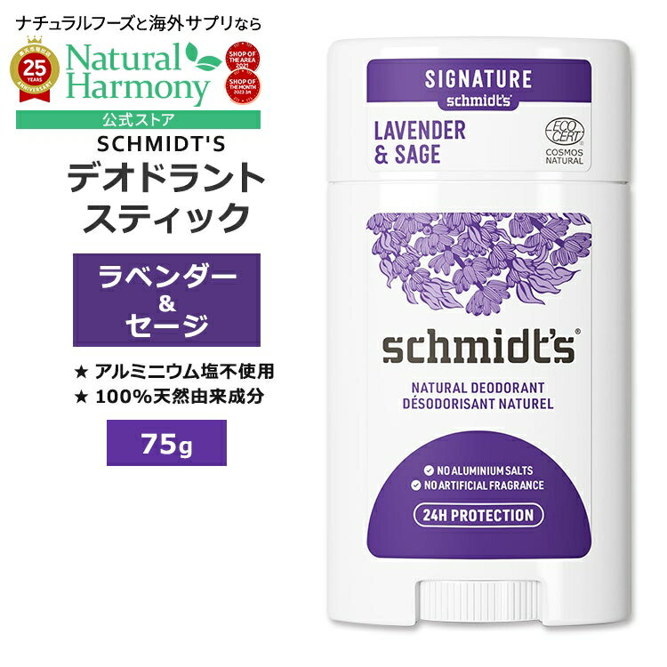 【店内8千円以上1000円OFFクーポン】[スティック型デオドラント]シュミッツ デオドラントスティック ラベンダー&セージ 75g (2.65oz) SCHMIDT'S DEODORANT STICK Lavender & Sage パーソナルケア 100%天然由来成分【お取り寄せ商品】【合わせて買いたい】