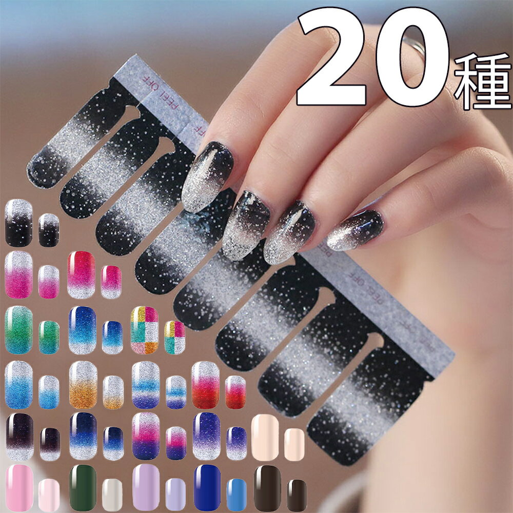 全20種 貼るだけ ネイルシール キラキラ ラメ 無地 1セット16枚 ネイルチップ ジェルネイルシール ネイルパーツ フルカバータイプ ネイルアート 中学生 高校生 簡単 セルフネイル グラデーション