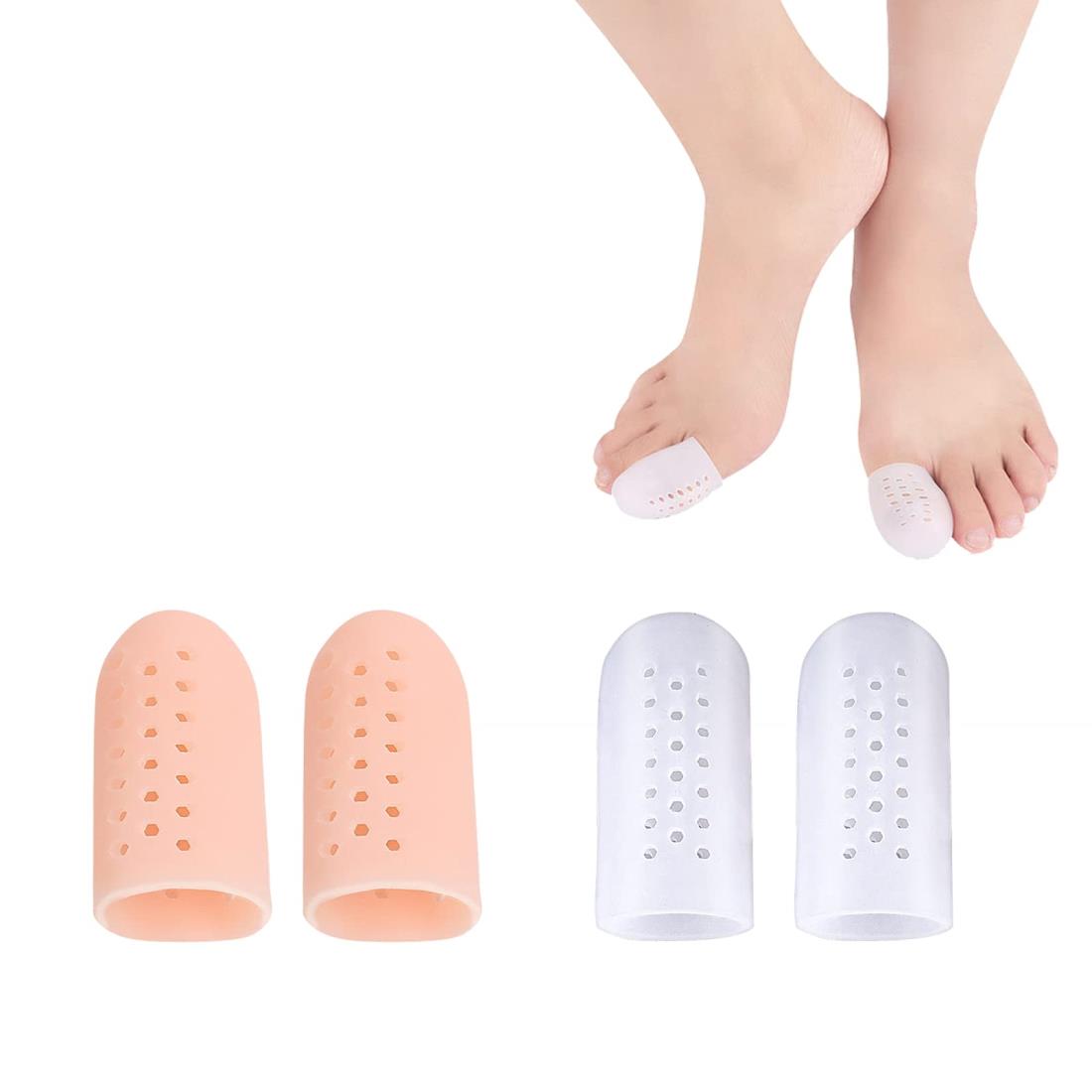 【柔らかいSEBS素材】肌に優しいSEBS素材なので安心して使用できます。さらに水洗い可能なので、常に清潔な状態を保つことが出来ます。【使いやすい】ホワイトと肌色2ペア(4個)、足指保護キャップのサイズは、長さ6cm、直径2.4cm、厚さ0.2cmです。柔らかいシリコン製で、良好な伸縮性があり、ほとんどの足指にぴったりフィットし、通常の着用にはまったく影響がありません。【カット可能】優れたクッション性、高い弾力性、柔軟性を備えています。つま先のサイズに合わせて、はさみでつま先の袖をカットすることもできます。【通気性のあるデザイン】つま先を窒息させる伝統的なつま先帽子やつま先袖とは異なり、両脇の複数の六角形通気孔は、つま先が自由に呼吸できるように 足指保護キャップに均等に分布しています。【様々なシーンで大活躍】魚の目・たこ・まめ・巻き爪・ハンマートウなどの対策に効果的。スポーツにも適用し、マラソン、トライアスロン、アウトドアなど、長距離走のストレスから指、爪を保護します。