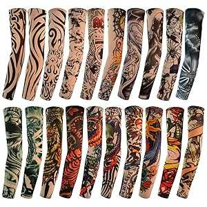 HOVEOX 20個 一時的なタトゥー アームスリーブ アート フェイクスリップオンアーム 日焼け止めスリーブ ボディアート ストッキング プロテクター - デザイン トライバル、タイガー、ドラゴン、スカルなど ユニセックス 伸縮性 コスプレアクセサリー HOVEOX