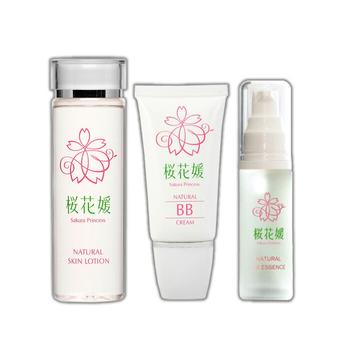 桜花媛(サクラプリンセス)完ぺきトリプルセット【ナチュラルBBクリーム】【ナチュラルBBエッセンス】【ナチュラルスキンローション】3点セット 紫外線吸収剤・パラベン無添加 乾燥肌 敏感肌