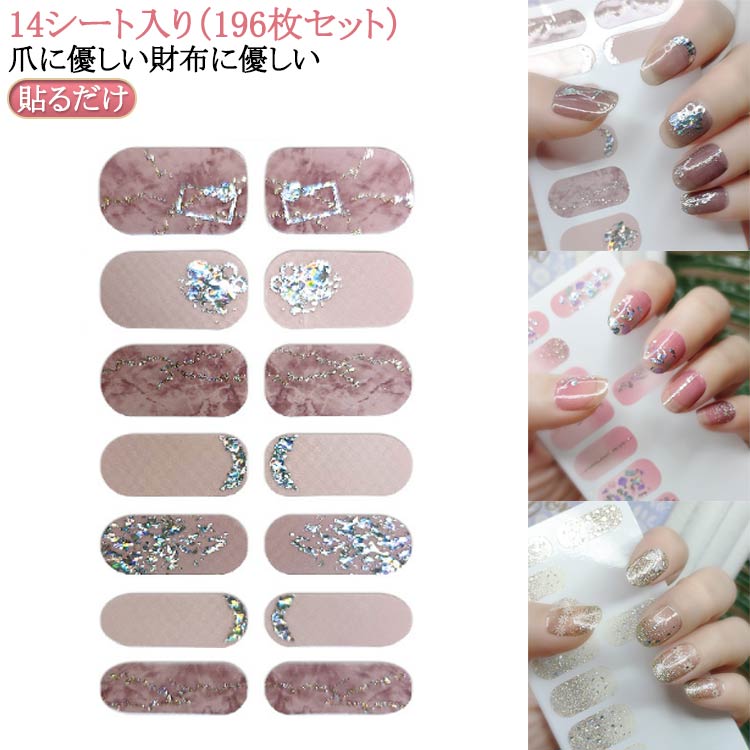 一枚で両手 ジェル 14シート/196枚セット 簡単 硬化タイプ ネイルシール フット 半硬化 ネイルシール 貼るだけ ネイル 一枚で両手 ペディキュア ネイル フットネイル ハンド シール 人気ネイル セルフネイル ネイルステッカー 送料無料
