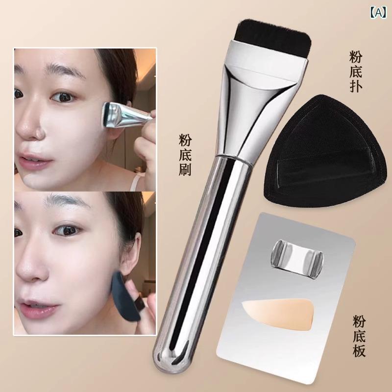 メイク 道具 セット 一 体型 ファンデーション メイクブラシセット 3 ピース フラット ヘッド パウダーを 吸収 しない 跡が 残らない 美容 ツール パレット パウダーパフ