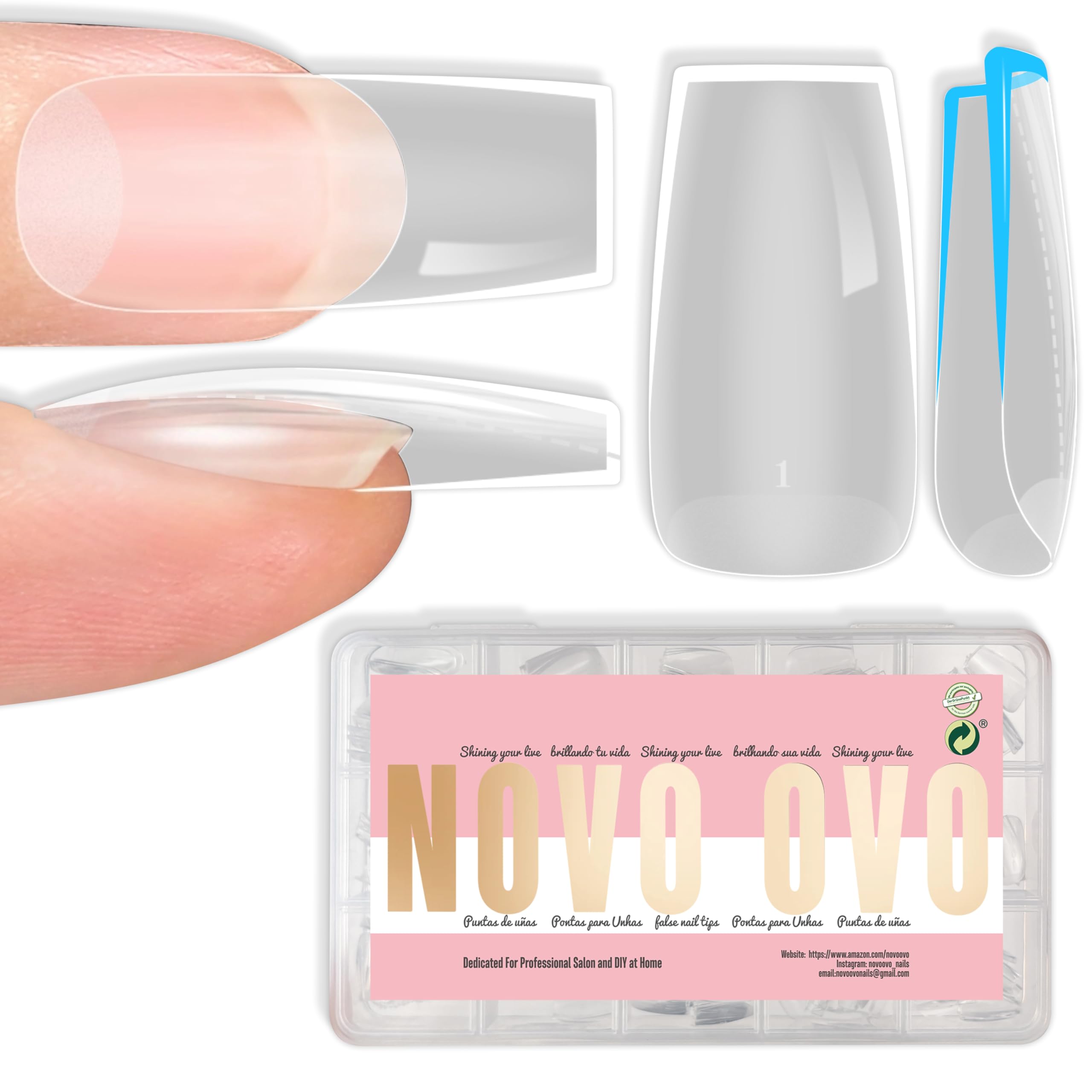 【送料無料】NOVO OVO Medium Nail Tips ミディアムネイルチップ [並行輸入品] 色:Medium Square Clear Extra Thick 224_EU、サイズ:Medium
