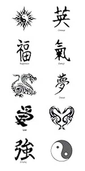 漢字、陰陽、ドラゴン ブラック 一時的なタトゥー 10 個セット This Sweet Earth Kanji, Yin Yang, Dragon Black Temporary Tattoos Set of 10 tattoos
