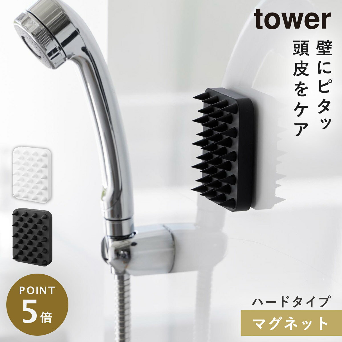 マグネット頭皮マッサージブラシ タワー ハードタイプ 山崎実業 tower ホワイト ブラック 1771 1772 タワーシリーズ yamazaki