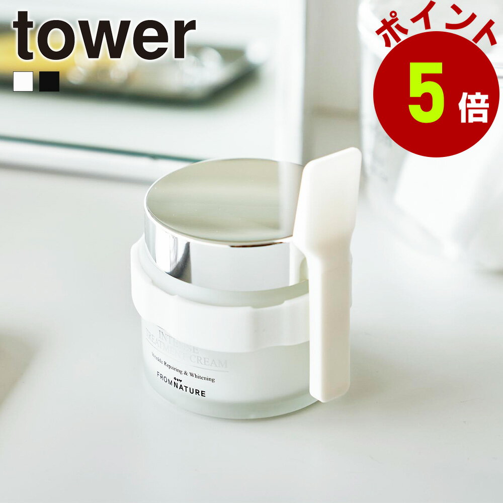 山崎実業 【 収納バンド付き美容クリームスパチュラ タワー 】 tower 4038 4039基礎化粧 クリーム 容器に巻き付け 簡単 すくう 衛生的 保管場所所 コンパクト おしゃれ スタイリッシュ 白 黒