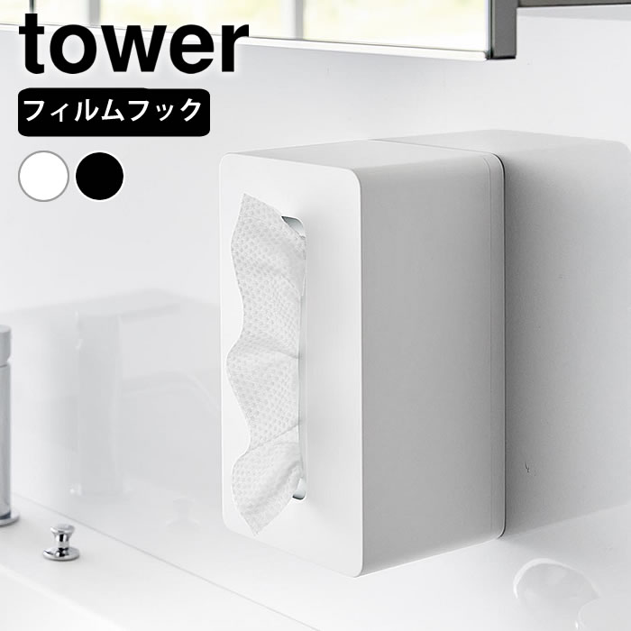 《ポイント5倍!》ペーパータオル ケース フィルムフッククレンジングタオルケース タワー tower フィルムフック 化粧 クレンジングタオル スリム タワーシリーズ 山崎実業 yamazaki ヤマジツ 1446 1447 ティッシュ ソフトパックティッシュ おしゃれ