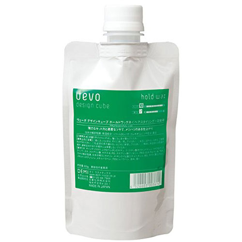 biasu【商品名】ウェーボデザインキューブハードワックス[DEMI][uevodesigncube]【内容量】80g【メーカー/ブランド】DEMIdesigncube(ウィーボ・デザインキューブ)【商品概要】強めのセット力で、毛束感・立体感のある仕上がり。シャイニーパール成分配合で自然なツヤを演出します。◆毛束感・立体感を表現しながら動きを強調します。◆ショート〜ミディアムスタイルに。男性にもオススメです。◆シアーパール成分配合で、パサつきがちな毛先に落ち着きとツヤを与えます。◆ほのかなフローラルフルーティの香り。【使用方法】手のひらでよく伸ばし、髪全体に握るようになじませた後、毛束ひとつひとつをねじりながらシャープな束感と動きをつけます。ドライ時に使用して下さい。ご使用上及びお取扱い上のご注意・頭皮に異常が生じた場合は、使用をお止めになり皮膚科等にご相談下さいますようお願い致します。・目に入った場合は、直ちに流水にて洗い流して下さい。・小さなお子様のお手の届かない所へ保管下さい。【成分】水・マイクロクリスタリンワックス・コハク酸ジオクチル・セテス?10・ヒドロキシステアリン酸・キャンデリラロウ・BG・セテス-6・シア脂・ステアリン酸グリセリル(SE)・加水分解卵殻膜・加水分解コンキオリン・メトキシケイヒ酸エチルヘキシル・ポリウレタン-14・アクリレーツコポリマーAMP・PEG-9M・マイカ・酸化チタン・エタノール・水酸化Na・水酸化Al・メチルイソチアゾリノン・メチルパラベン・プロピルパラベン・香料・黄203・緑201【原産国】日本製【商品区分】化粧品【広告文責】株式会社美アスTEL:086-728-5600・ご注文頂きメーカー発注後に欠品や終売になっている事が判明した場合には、ご注文をキャンセルさせて頂く事がございます。・掲載変更が間に合わず、商品画像とは違うデザイン(リニューアル後)の商品をお送りする事があります。・天然由来の材料や、材質を使用している商品は、その匂いが付着している事がございます。・メーカー等の都合により、商品規格・仕様(容量、パッケージ、原材料、原産国など)が変更される場合がございます。そのため、実際にお届けする商品とサイト上の商品情報の表記が異なる場合がございます。ご使用前に必ずお届けした商品の商品ラベルや注意書きをご確認下さい。詳細な商品情報が必要な場合はメーカー等にお問合せ下さい。(※仕様等、最新情報に更新するよう心掛けておりますが、メーカーの変更に間に合わない事もございます。現状優先として対応しておりますので、ご心配の方はご注文前に必ずご確認下さい。)疑問点・ご不明点がございましたら、お手数ですがご購入前に必ずお問い合わせ下さいますようお願い致します。