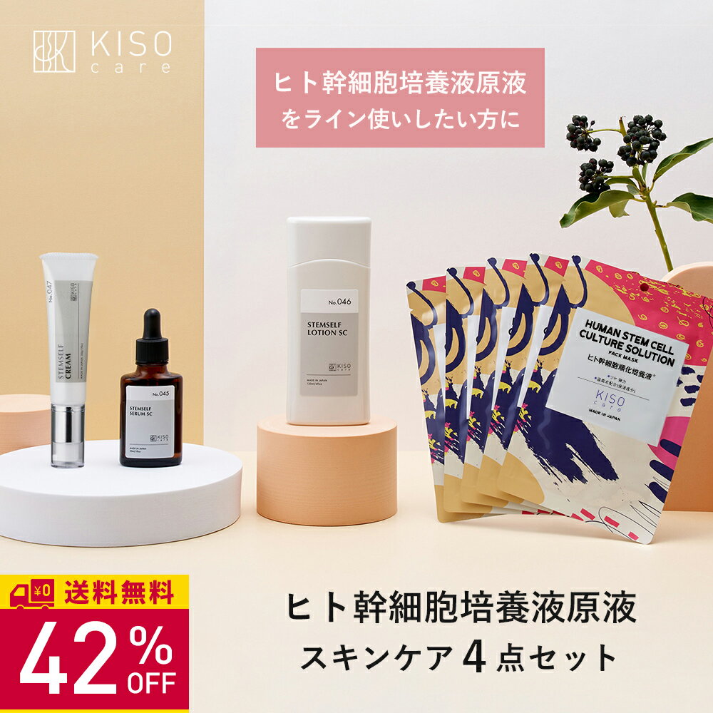 【42%OFF P10倍 楽天スーパーSALE】KISO CARE ヒト幹細胞 順化培養液 原液 配合スキンケア 4点セット ヒト幹細胞 化粧水 ヒト幹細胞 美容液 ヒト幹細胞クリーム パック マスク 母の日ギフト 父の日ギフト 日本製 送料無料