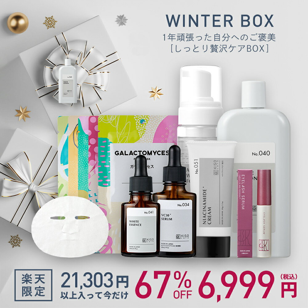 1年頑張った自分へのご褒美、しっとりした肌を叶える特別なセット。 1セットで基本のケア~まつ毛ケアまで出来る、楽天スーパーSALE限定のお得なスキンケアセット。 【ラインナップ】 洗顔:アミノ酸系洗顔料 アミノウォッシングフォーム 化粧水:アルブチン、ビタミンC誘導体配合化粧水 ホワイトローションVC 美容液:ビタミンC誘導体30%配合美容液 ピュアエッセンスVC30 美容液:アルブチン、フラーレン配合美容液 ホワイトエッセンスVCRS クリーム:ナイアシンアミド20%配合クリーム ナイアミドクリームNA まつ毛溶液:キャピキシル10パーセント配合まつ毛美容液 ミバエルアイラッシュセラムCA フェイスマスク:個包装フェイシャルマスク 5枚入り 販売名 楽天スーパーSALE限定福袋 内容量 アミノウォッシングフォーム 200ml(約1ヵ月分) ホワイトローションVC 120ml(約2ヵ月分) ピュアエッセンスVC30 30ml(約1ヵ月半分) ホワイトエッセンスVCRS 20ml(約1ヵ月~1ヵ月半分) ナイアミドクリームNA 50g(約2ヵ月分) ミバエルアイラッシュセラムCA 8g(約5ヵ月分) フェイシャルマスク 20g(5枚) 使用目安 開封後3ヵ月 使用方法 洗顔後、ミバエルアイラッシュセラムCAをまつ毛の生え際に塗布してください。 その後、ホワイトローションVC、ピュアエッセンスVC30、ホワイトエッセンスVCRS、ナイアミドクリームNAの順番でご使用ください。 マスクをご使用になる場合は、洗顔後マスクのみでスキンケアは完了いたします。 ※マスクを使用し、乾燥が気になる場合はフェイスクリームをご使用ください。 全成分 ◆アミノウォッシングフォーム 水、グリセリン、ココイルグリシンK、グルコシルトレハロース、加水分解デンプン、ポリクオタニウム-51、タウリン、リシンHCl、アラニン、ヒスチジンHCl、アルギニン、セリン、プロリン、グルタミン酸、トレオニン、バリン、ロイシン、グリシン、アラントイン、イソロイシン、フェニルアラニン、アセチルヒアルロン酸Na、ヒアルロン酸Na、ヒアルロン酸クロスポリマー-2-Na、加水分解ヒアルロン酸Na、ペンチレングリコール、エチルヘキシルグリセリン、フェノキシエタノール ◆ホワイトローションVC 水、エトキシジグリコール、アスコルビルリン酸Na、グリセリン、ペンチレングリコール、α-アルブチン、グリチルリチン酸2K、アセチルヒアルロン酸Na、ヒアルロン酸クロスポリマー-2-Na、加水分解ヒアルロン酸、ヒアルロン酸Na、ハトムギ種子エキス、ツボクサエキス、オウゴン根エキス、イタドリ根エキス、カンゾウ根エキス、チャ葉エキス、ローズマリー葉エキス、カミツレ花エキス、(スチレン/アクリレーツ)コポリマー、BG、クエン酸、クエン酸Na、エチルヘキシルグリセリン、 ピロ亜硫酸Na、デヒドロ酢酸Na、フェノキシエタノール ◆ピュアエッセンスVC30 水、ビスグリセリルアスコルビン酸、グリセリン、プロパンジオール、ペンチレングリコール、ヒアルロン酸Na、トコフェロール、ツボクサエキス、オウゴン根エキス、イタドリ根エキス、カンゾウ根エキス、チャ葉エキス、ローズマリー葉エキス、カミツレ花エキス、キサンタンガム、BG、エチルヘキシルグリセリン、カルボマー、水酸化K、ホウケイ酸(Ca/Na)、酸化銀 ◆ホワイトエッセンスVCRS 水、グリセリン、プロパンジオール、ペンチレングリコール、パルミチン酸アスコルビルリン酸3Na、フラーレン、α-アルブチン、シロキクラゲ多糖体、ヒアルロン酸Na、グリチルリチン酸2K、ツボクサエキス、オウゴン根エキス、イタドリ根エキス、カンゾウ根エキス、チャ葉エキス、ローズマリー葉エキス、カミツレ花エキス、BG、エチルヘキシルグリセリン、PVP、ピロ亜硫酸Na、フェノキシエタノール ◆ナイアミドクリームNA 水、ナイアシンアミド、エチルヘキサン酸セチル、ラウリン酸メチルへプチル、プロパンジオール、グリセリン、BG、パンテノール、ペンチレングリコール、水添レシチン、水添ナタネ油アルコール、スクワラン、ドデカン、フィトステロールズ、アロエベラカルスエキス、イチョウカルス培養エキス、オタネニンジンカルス培養エキス、ムラサキバレンギクカルス培養エキス、ヨモギカルスエキス、加水分解ヒアルロン酸Na、アセチルヒアルロン酸Na、ヒアルロン酸Na、ヒアルロン酸クロスポリマー-2-Na、グリチルリチン酸2K、ツボクサエキス、オウゴンエキス、イタドリ根エキス、カンゾウ根エキス、チャ葉エキス、ローズマリー葉エキス、カミツレ花エキス、ユズ果皮油、ベヘン酸グリセリル、オクタステアリン酸ポリグリセリル-6、酢酸トコフェロール、エチルヘキシルグリセリン、ホウケイ酸(Ca/Na)、酸化銀 ◆ミバエルアイラッシュセラムCA 水、BG、プロパンジオール、グリセリン、ペンチレングリコール、ウコンカルス順化培養液、ヒト幹細胞順化培養液、スタフィロコッカスエピデルミジス、ベニコウジ菌/(アサイヤシ果実/コメヌカ)発酵液、ピロリジニルジアミノピリミジンオキシド、アセチルテトラペプチド-3、ビオチン、アセチルヒアルロ