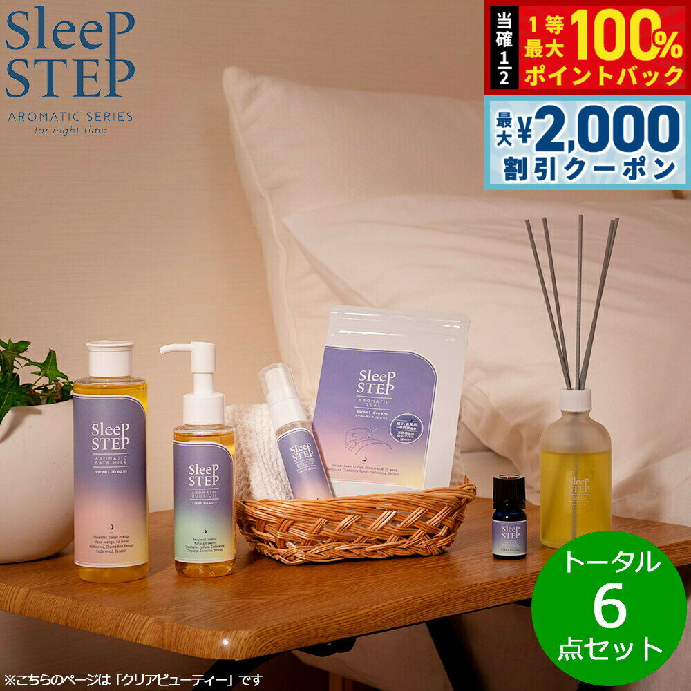【3/10は当店限定Wイベント!2000円OFFクーポン&抽選で最大10000ptバック】SLEEP STEP スリープステップ トータル6点セット(バスミルク/ボディオイル/ピローミスト/アロマシール/エッセンシャルオイル/ディフューザー) クリアビューティー ベルガモット 送料無料