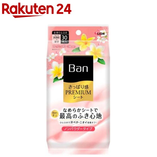 【最大半額!令和セール】ライオン Ban さっぱり感 PREMIUMシート ノンパウダータイプ フレッシュフローラルの香り 30枚