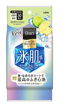 【ライオン】Ban(バン) さっぱり感PREMIUMシート クールタイプ ひんやりシトラスの香り(30枚入)【日用品】